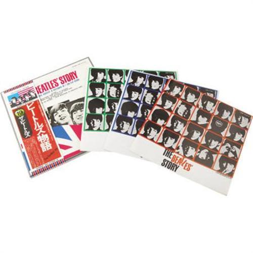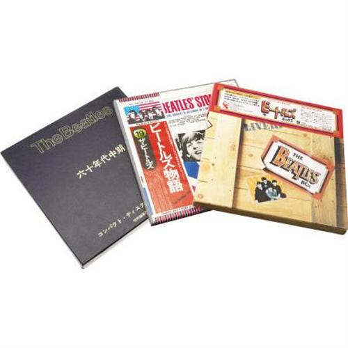 <B>Beatles Box Set Group of Three (1970s-1986).</B></I> Two of these sets were for the Japanese market; the other was from the UK, but with apparent Japanese markings. The two Japanese sets, complete with Obis intact are: <I>The Beatles Story</B></I> two-disc set (Apple, 1970s) in MT 9 (box)/ NM 8 (covers)/ MT 9 (discs); and <I>The Beatles Forever,</B></I> a remastered set of eight LPs with book and lyrics with selection from the earliest UK albums through <I>Abbey Road</B></I> (early 1980s) in NM 8 (box)/ GM-MT 10 (covers)/ GM-MT 10 (discs). The third set here is a UK issue from 1986 titled <I>The Beatles</B></I> in navy leatherette box with Japanese markings on the outside and three CDs on the inside, including <I>Help!,</B></I> <I>Rubber Soul,</B></I> and <I>Revolver,</B></I> along with a 176-page book and a metal Beatles drum set pin. It's a limited edition (#28/500) and is in VG-EX 6 (box)/ EX 7 (CDs).<BR><BR><b>Shipping:</b> Other (oversized items, group lo (<a target="_blank" href="http://www.heritageauctions.com/common/shipping.php">view shipping information</a>)