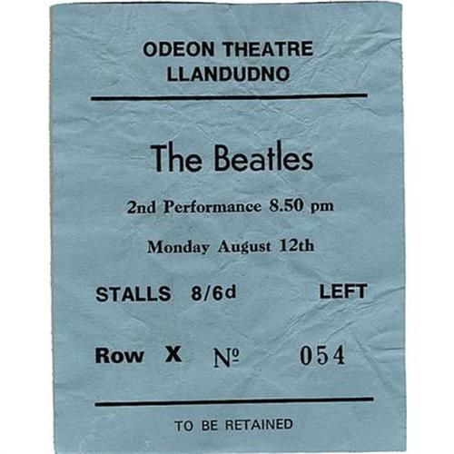 <B>Beatles Odeon Theatre Concert Ticket.</B></I> Ticket for an August 12, 1963, second performance show at the Odeon Theatre in Llandudno, Caernarvonshire, England. In Very Good condition with moderate overall wrinkling and tape pulls on the back.<BR><BR><b>Shipping:</b> Flat Material, Small (<a target="_blank" href="http://www.heritageauctions.com/common/shipping.php">view shipping information</a>)