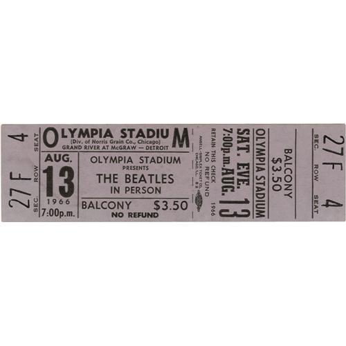 <B>Beatles Olympia Stadium Concert Ticket.</B></I> An unused ticket from the Beatles' August 13, 1966, evening performance at the Olympia Stadium in Detroit. It was their second stop in their final concert tour. The ticket is in Very Fine to Excellent condition with a few faint instances of soiling.<BR><BR><b>Shipping:</b> Small Flat (<a target="_blank" href="http://www.heritageauctions.com/common/shipping.php">view shipping information</a>)