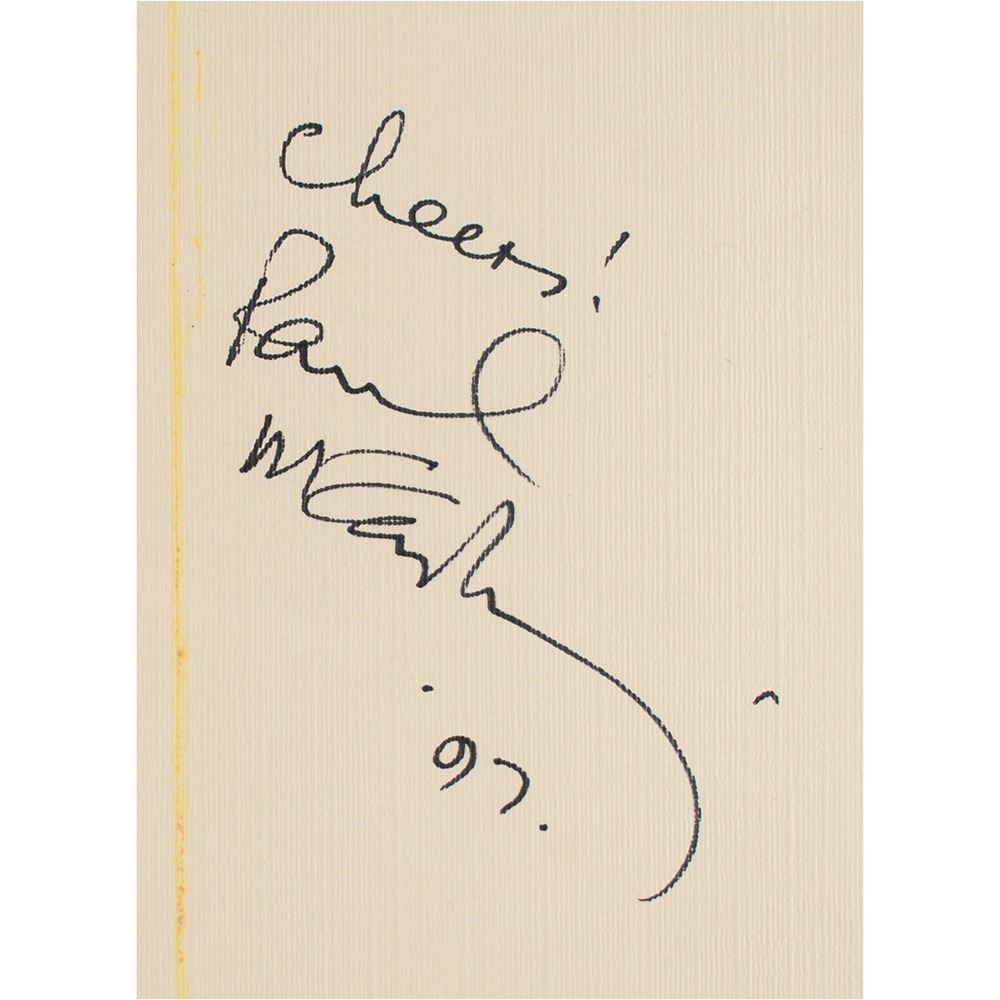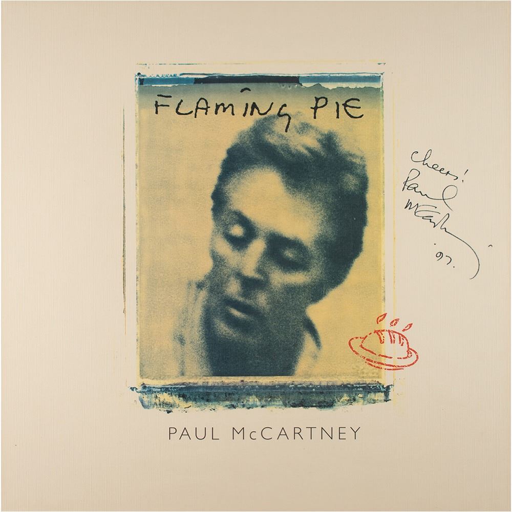Color 18 x 18 promo poster for McCartney's 1997 solo album Flaming Pie, boldly signed in black felt tip, "Cheers! Paul McCartney, '97." Rolled and in very fine condition. Consignor notes that this was obtained from one of McCartney's employees.