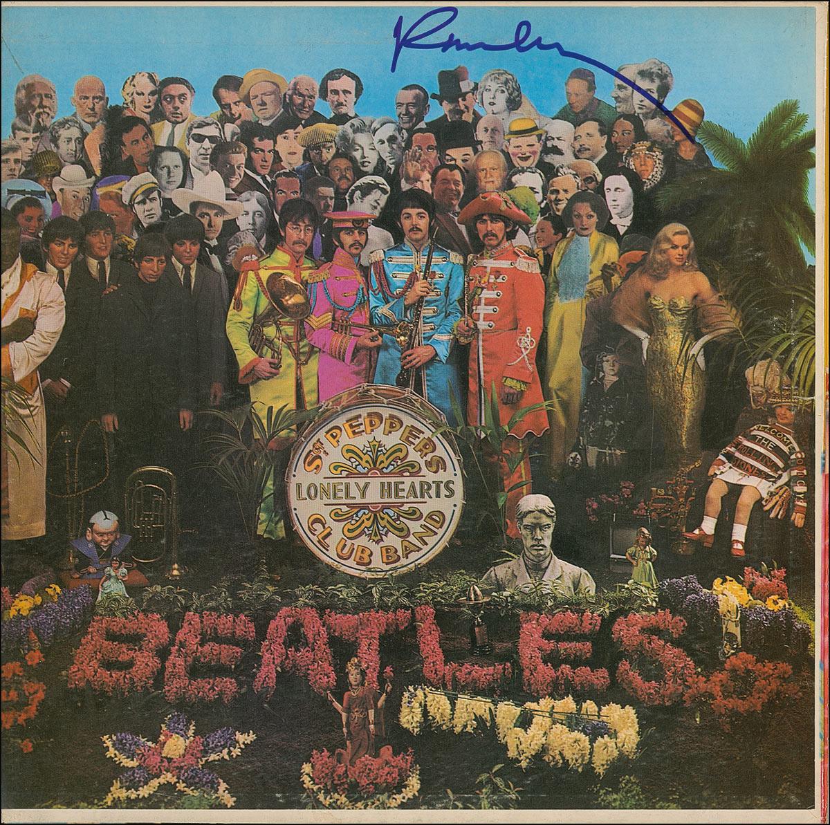 Sgt. Pepper’s Lonely Heart’s Club Band album signed in-person on the front cover in blue felt tip. In fine condition, with some scattered mild wear to covers and edges. The record is not included. Originally obtained by specialist Mike Wehrmann. A beautifully signed copy of the Beatles’s masterpiece.