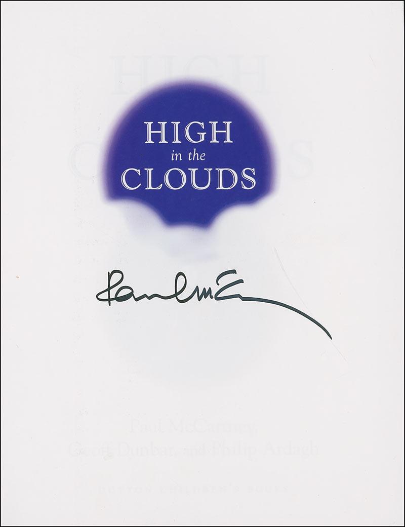 Signed book: High in the Clouds. First edition, first printing. NY: Dutton, 2005. Hardcover with dustjacket, 8.25 x 10.25. Signed on the half-title page in black felt tip “Paul McCartney.” In fine condition.