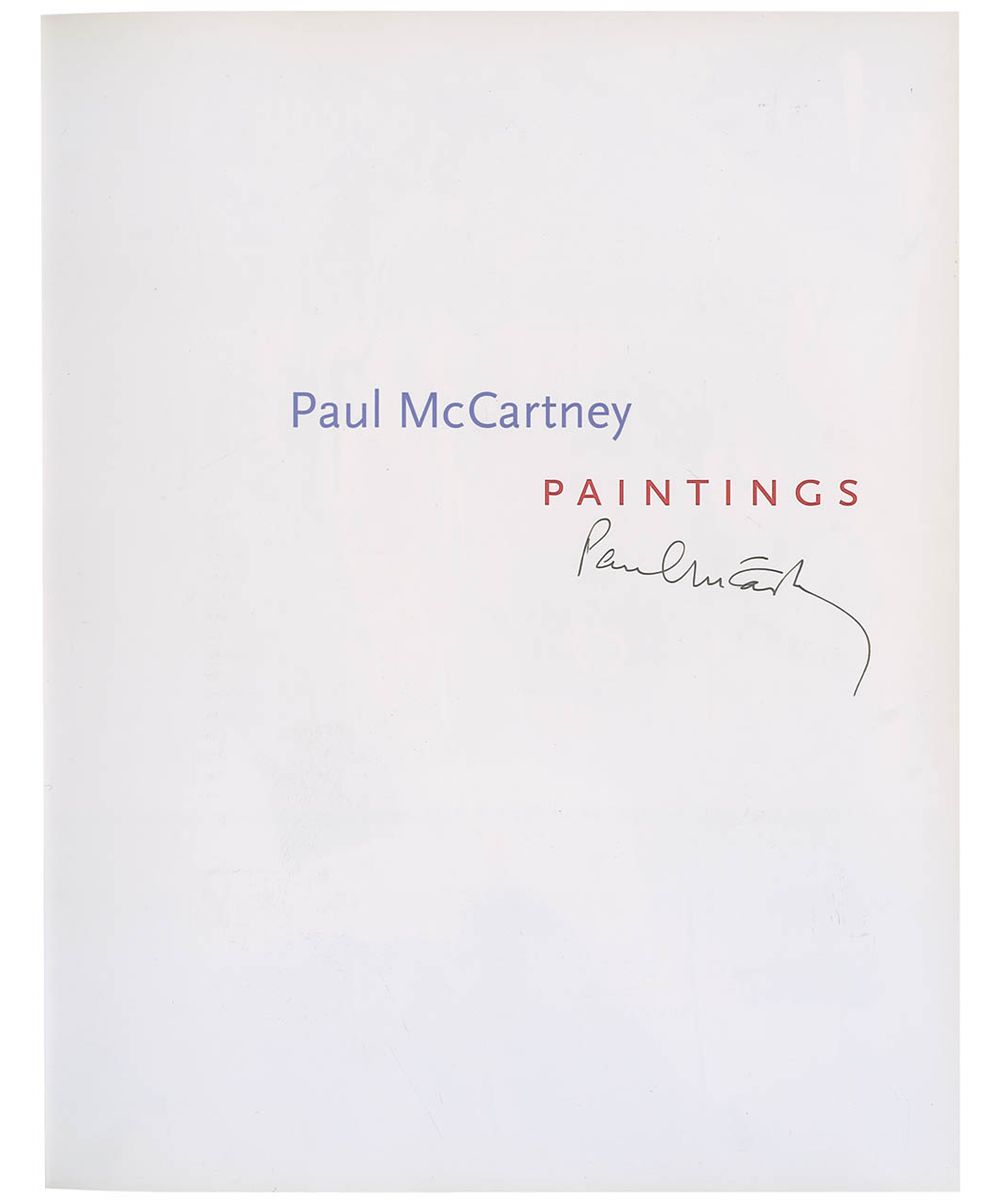 Signed book: Paintings. First edition. Boston: Little, Brown and Company, 2000. Hardcover with dustjacket, 10.5 x 12.75, 146 pages. Signed on the half-title page in black ink. In very fine condition. Accompanied by an unsigned announcement for an exhibition of McCartney’s paintings at Matthew Marks Gallery in New York.