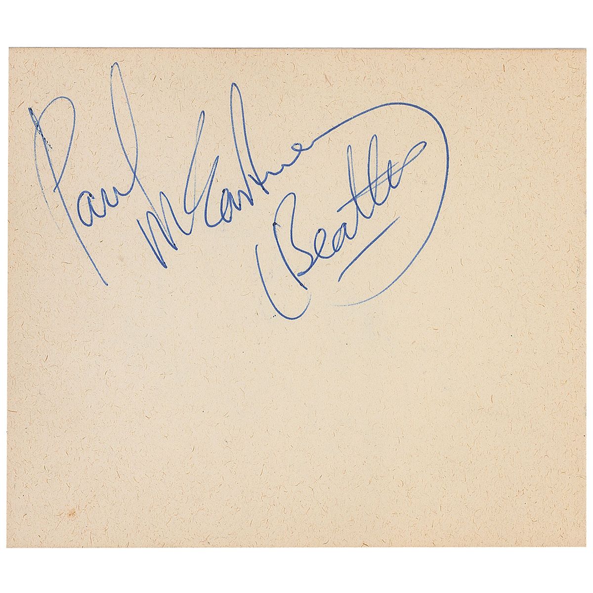 Vintage ballpoint signature, “Paul McCartney, Beatles,” on an off-white 4.5 x 3.75 album page, dating from circa 1963. In fine condition. Accompanied by a certificate of authenticity from Tracks.