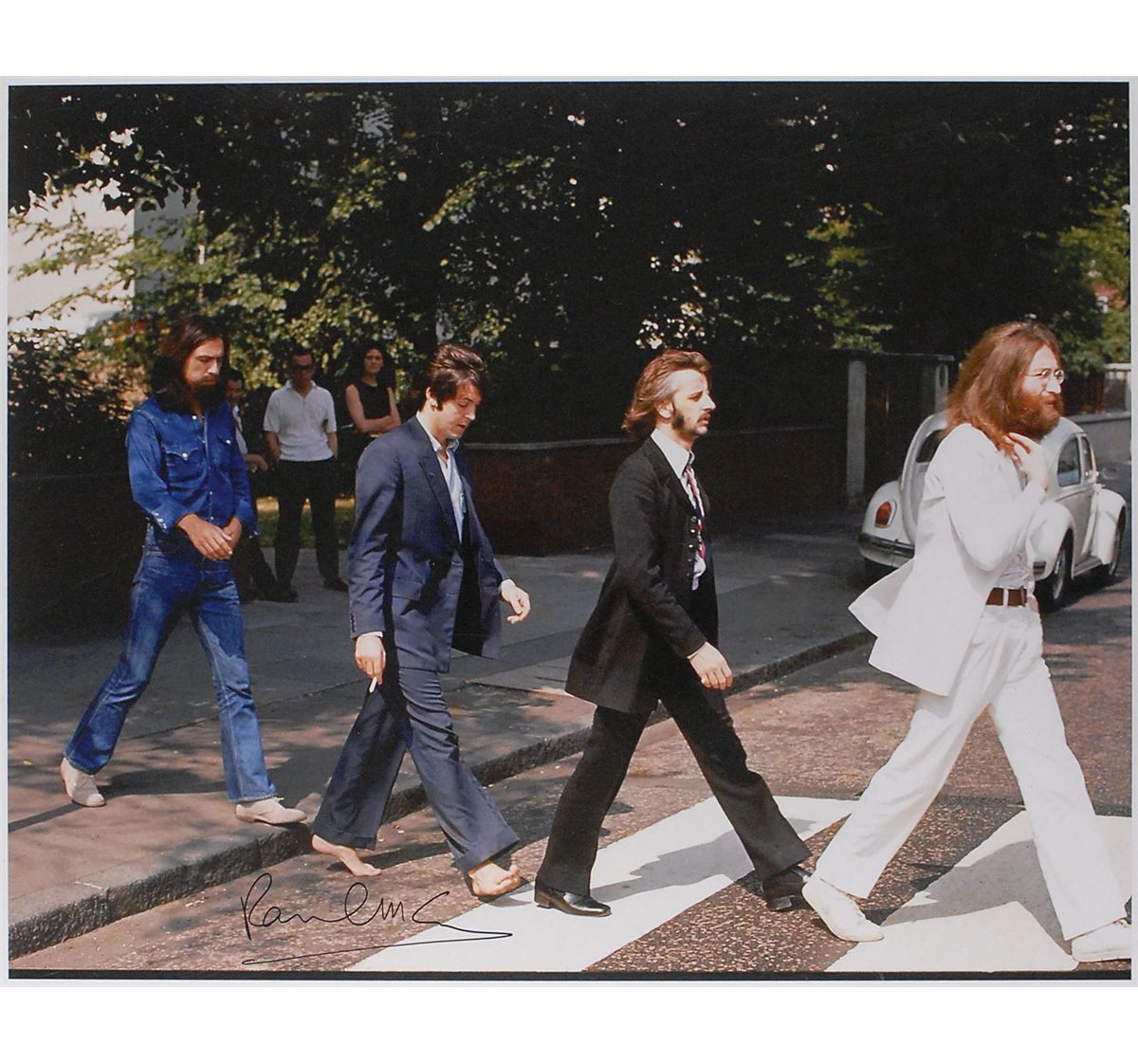 Color 20 x 16 laser print photo from the Abbey Road cover shoot, signed in black felt tip. In fine condition. Rolled.