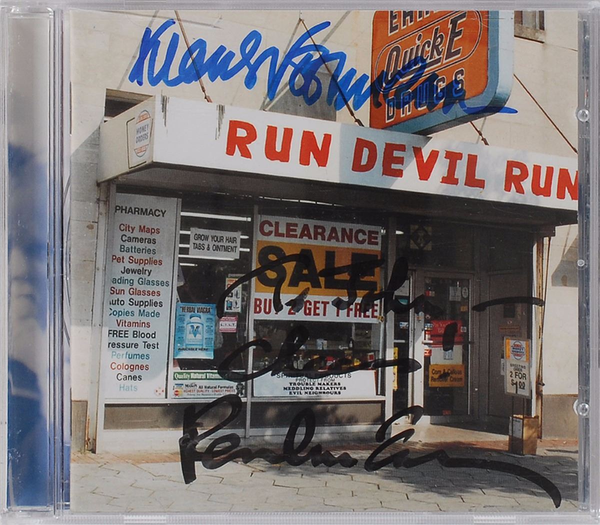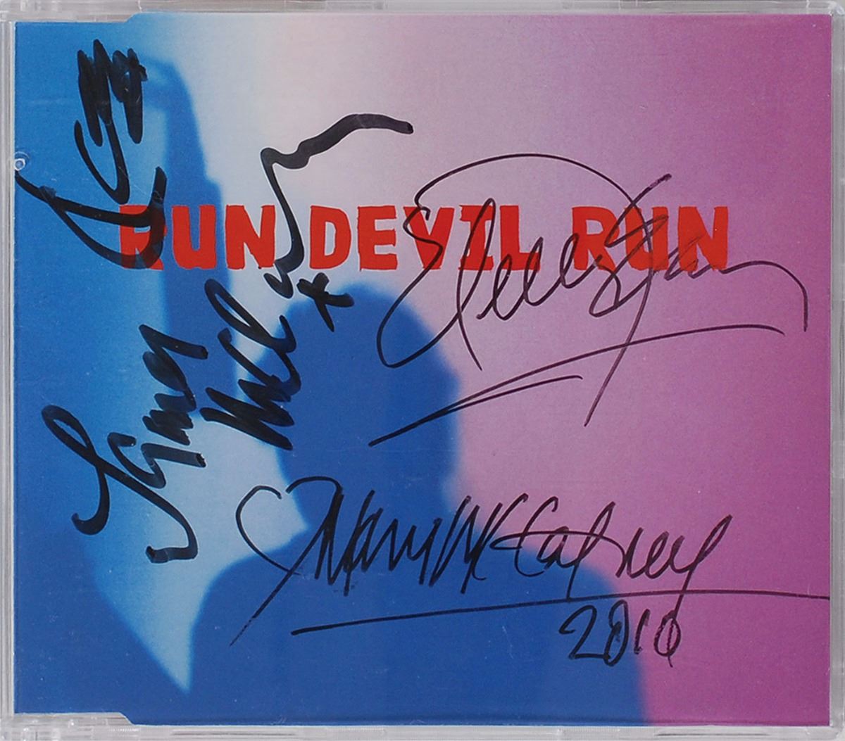 Run Devil Run CD signed and inscribed on the front of the booklet in black felt tip, “To John—Cheers! Paul McCartney,” and in blue felt tip, “Klaus Voormann.” The booklet for the second disc is signed in black felt tip by his son, James McCartney, and his daughters Stella and Mary. In fine condition, with some wear to slipcase. The CDs are included.