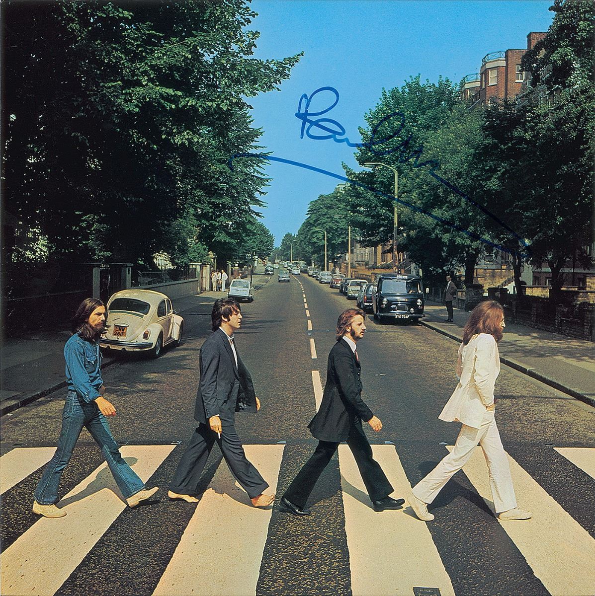 Desirable Abbey Road album, signed across the top in blue felt tip by McCartney. In fine condition. The record is included. Accompanied by a full letter of authenticity from REAL.