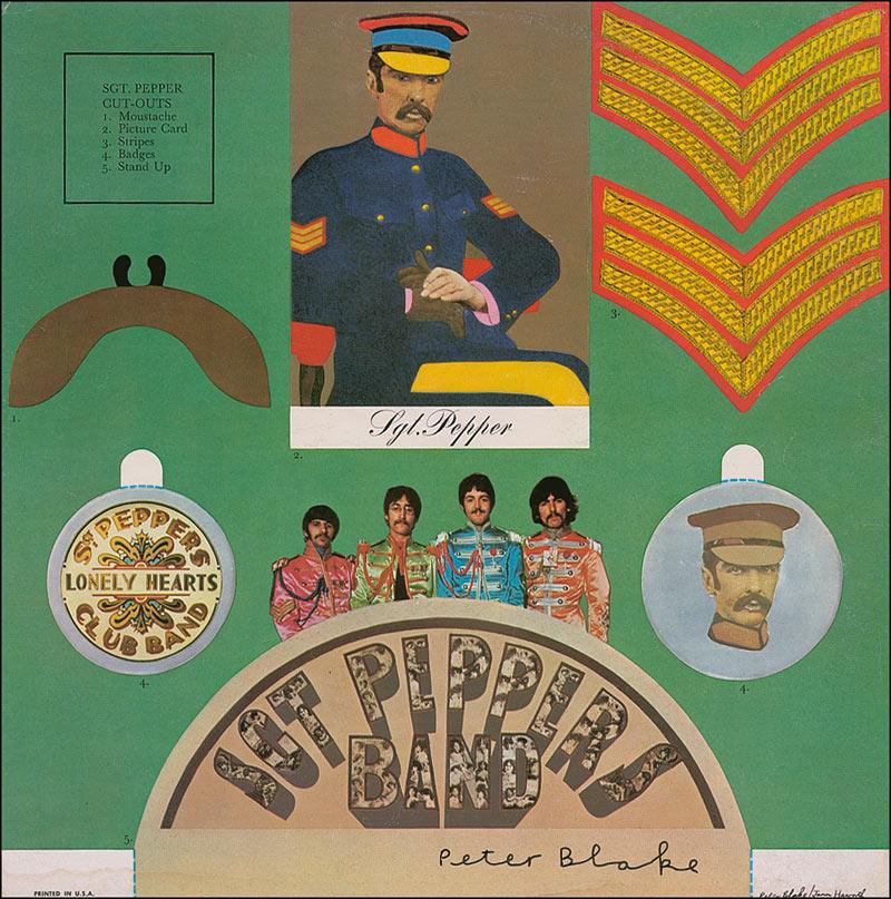 Image side of the Sgt. Pepper album sleeve, signed in black felt tip by Blake. Some scattered light creasing and toning, and some mild damp staining along bottom edge, otherwise fine condition.