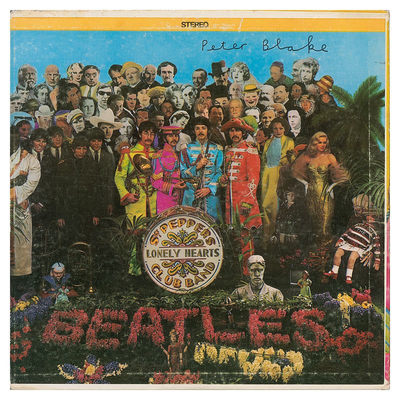 Sgt. Peppers Lonely Hearts Club Band album signed across the top in black felt tip, “Peter Blake.” In very good condition, with mild toning and wear, some surface impressions, light paper loss to the left edge, and mild ‘rings of wear.’ The record is not included.