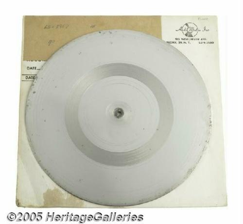 <B>Beatles "Please Please Me" Mother Disc.</B></I> This is the one that started it all, the A-side only, 11" mother disc for the Beatles' first American single (VJ #498). Condition is VG+ with some tarnishing.
