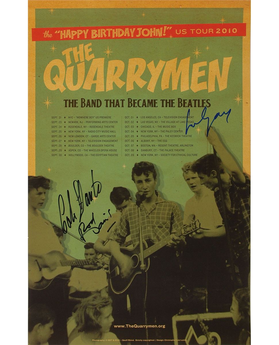 Color 11 x 17 poster entitled ‘Happy Birthday John! US Tour 2010,’ signed in black felt tip by Colin Hanton and Rod Davis, and in blue felt tip by Len Garry. In fine condition, with light curling from having previously been rolled.