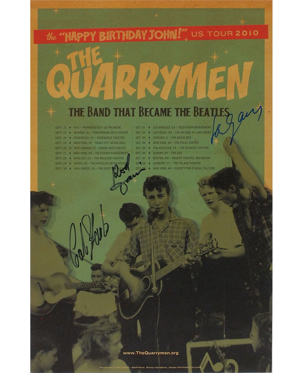 Color 11 x 17 poster for the “Happy Birthday John!” US Tour 2010, signed in black felt tip by Colin Hanton and Rod Davis, and in blue felt tip by Len Garry. Rolled and in fine condition.
