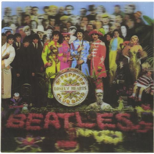 <B>Beatles Rare "Sgt. Pepper's Lonely Hearts Club Band" Lenticular Cover.</B></I> A quite rare 12" x 12" psychedelic lenticular cover prototype for the Beatles' groundbreaking 1967 album. One of a handful of such designs (see also the matching Cream <I>Disraeli Gears</B></I> cover also in this auction) by the Vari-Vue Company of New York, one of only three companies that made lenticular items at the time. The 3-D effect was used on toys, buttons, books, and clothing, but never really took off for use on album covers -- too bad, considering the striking effect it gave to this already stunning work of album art. In Excellent condition.<BR><BR><b>Shipping:</b> Flat Material, Large (<a target="_blank" href="http://www.heritageauctions.com/common/shipping.php">view shipping information</a>)