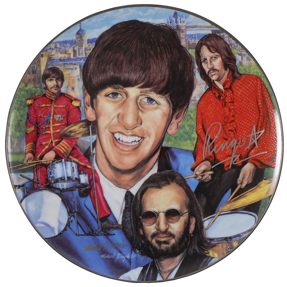 Colorful limited edition 10.25-inch Gartlan artist proof plate, limited issue of 250, signed in silver ink by Starr, “Ringo,” and gold ink by the artist, Michael J. Taylor. In fine condition.