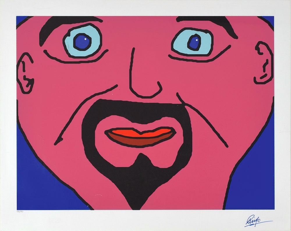 Color limited edition 27 x 21.5 serigraph print entitled 'Big Close Up,' numbered 28/50, signed in the lower border in blue felt tip, "Ringo." Rolled and in fine condition, with a few creases.