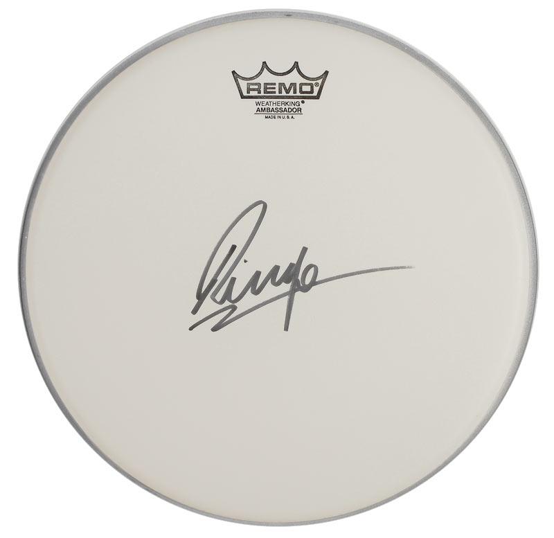 Unused 12” Remo coated drumhead, signed in black felt tip, “Ringo.” In very fine condition.