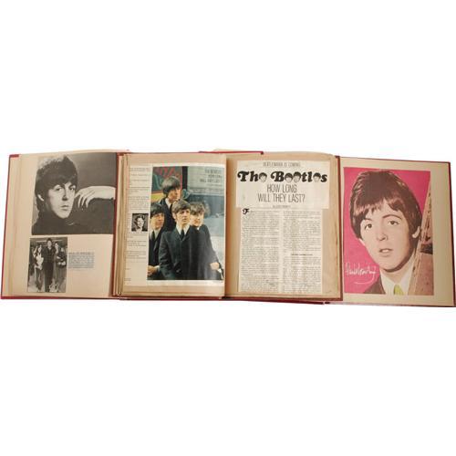 <B>Beatles Scrapbooks Set.</B></I> Three vintage scrapbooks containing a large assortment newspaper and magazine clippings about the Beatles from 1964-65. In Fine to Very Fine condition with mild to moderate wear.<I>From the Robert Johnson Memorabilia Collection.</B></I><BR><BR><b>Shipping:</b> Books & Catalogs (<a target="_blank" href="http://www.heritageauctions.com/common/shipping.php">view shipping information</a>) <BR><BR><B>Important n