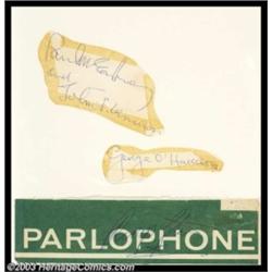 Beatles - Set of Autographs Included here are three fully authenticated original autographs of the Fab Four from Paul McCartney, John Lennon, and George Harrison. These signatures were obtained and authenticated by one of the world's foremost Beatles collectors, who is also a consultant to a number of major auction houses including Sothebys and Christies. Complete sets of the Fab Four's signatures have become increasingly rare over the past decade, but you're three-quarters of the way home with this lot, and Ringo's still out there to complete the set! This particular grouping is clean and ideal for display. Included is a letter of authenticity guaranteeing the signatures to be genuine. Cataloged and guaranteed by Startifacts. Important notice: Heritage usually auctions material at the rate of 200-250 lots per hour. On some occasions eBay Live bid software or the Internet may not be able to keep up with the pace of the auction. We recommend placing a realistic absentee bid now as insurance to avoid disappointment. Occasionally the auctioneer may eliminate or reject an eBay Live bid, and the auctioneer may also reopen a lot after the close of the eBay live bidding (usually because we missed an audience bid), and may reject your bid even if it shows you as the winning bidder. By bidding via eBay Live, you agree that Heritage may award the lot to another bidder at its sole discretion under the circumstances described above or any other reasonable circumstances. Also please note that all Heritage lots purchased through eBay Live carry a 20% Buyer's Premium. Please make sure you read the Terms and Conditions before you bid.