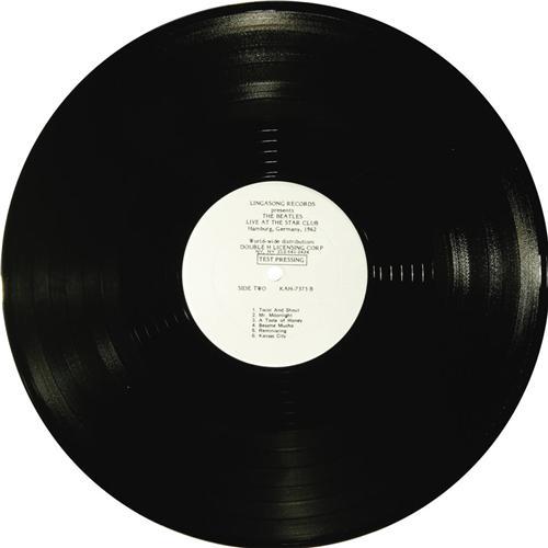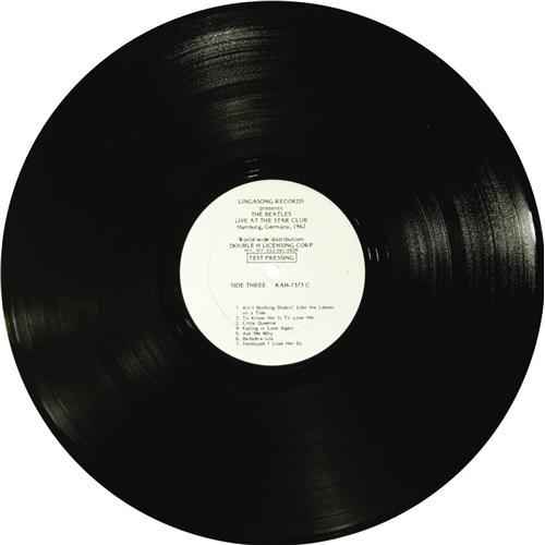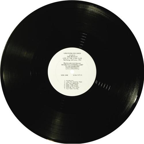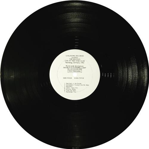 <B>Beatles Test Pressing "Live At The Star Club" LP Lingasong Records (1977).</B></I> Here are 27 songs by the Beatles caught live in 1962 at Hamburg's Star Club. These two disc test pressings were made in 1977. Check out the discs online for the song lineup! Condition: EX 7 (both discs). <I>From the GRT Collection</B></I>.