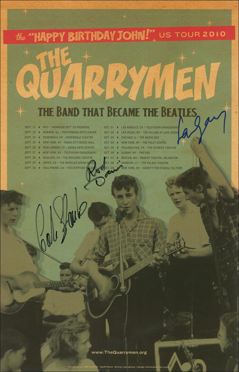 Color 11 x 17 mini-poster for their Happy Birthday John 2010 US Tour, signed in black felt tip by Rod Davis and Colin Hanton, and in blue felt tip by Len Garry. In fine condition.