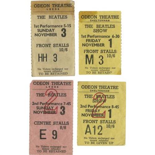 <B>Beatles Odeon Theatre Ticket Stubs, Group of 3.</B></I> Included are used tickets for the Beatles' November 1 and 3, 1963 performances at the Odeon Theatre (two of each). Items are in overall Very Fine condition with mild wear and some instances of tape residue.<BR><BR><b>Shipping:</b> Flat Material, Small (<a target="_blank" href="http://www.heritageauctions.com/common/shipping.php">view shipping information</a>)