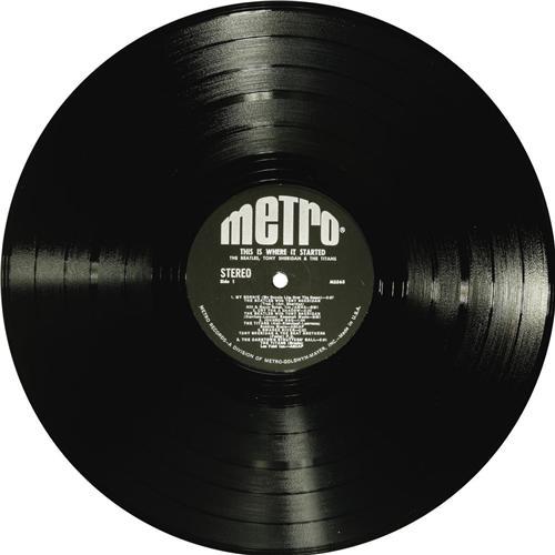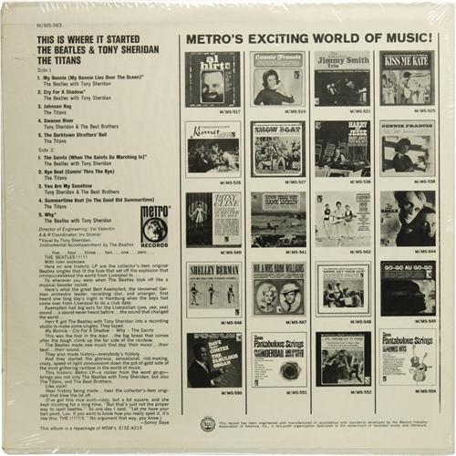 <B>Beatles and Tony Sheridan "This Is Where It Started" LP Metro 583 Stereo (1964).</B></I> Included here are four songs from the tandem of the Beatles and Tony Sheridan: "My Bonnie", "Cry For A Shadow", "The Saints", and "Why", plus two solo songs from Sheridan and four by the Titans. The original mono cover has been 'revised' by a "STEREO" sticker in the top right corner. Still has the shrink wrap. Condition: NM 8/ MT 9.