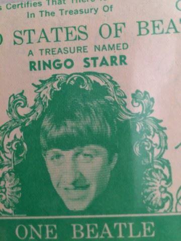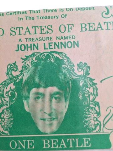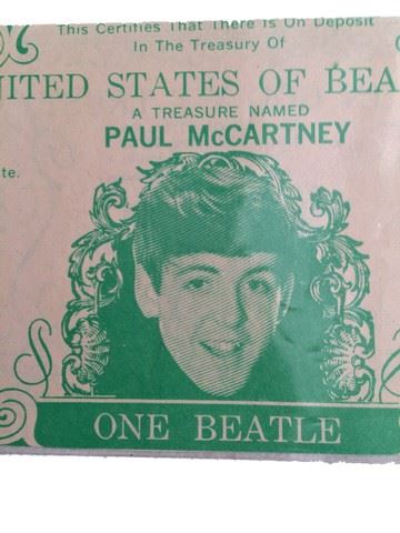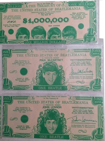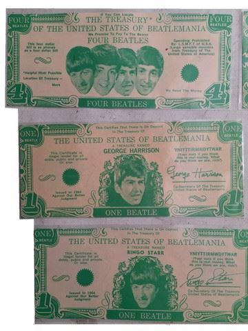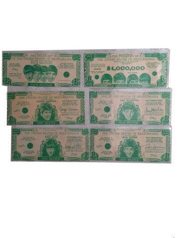 Beatles Original Vintage 1964 money set of 6 bills featuring each Beatle member and then all 4 Beatles on two of the bills. (6x3)