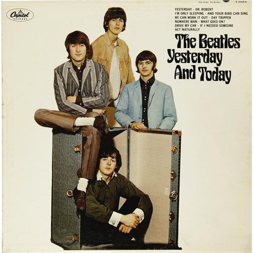 <B>Beatles "Yesterday And Today" Second State Butcher Cover Capitol T2553 (1966).</B></I> So you have a GM-MT 10 T-2553 record with no "Butcher Cover" to put it in? Here's your solution: a Second State cover of the Beatles' infamous, original release. There is some creasing at the bottom right corner, a 1" split along the bottom right corner, and some staining on the back. Condition: VG-EX 6.