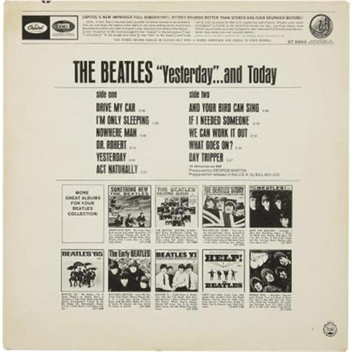 <B>Beatles</B></I> <B><I>Yesterday and Today</B></I></B></I> <B>Second State Butcher Cover Stereo LP (Capitol 2553, 1966).</B></I> This second state Butcher Cover has the non-controversial Trunk Cover pasted over the original version. The stereo copy is about twice as rare as the mono. Condition: VG-EX 6/ EX 7.<BR><BR><b>Shipping:</b> Recordings (<a target="_blank" href="http://www.heritageauctions.com/common/shipping.php">view shipping information</a>)