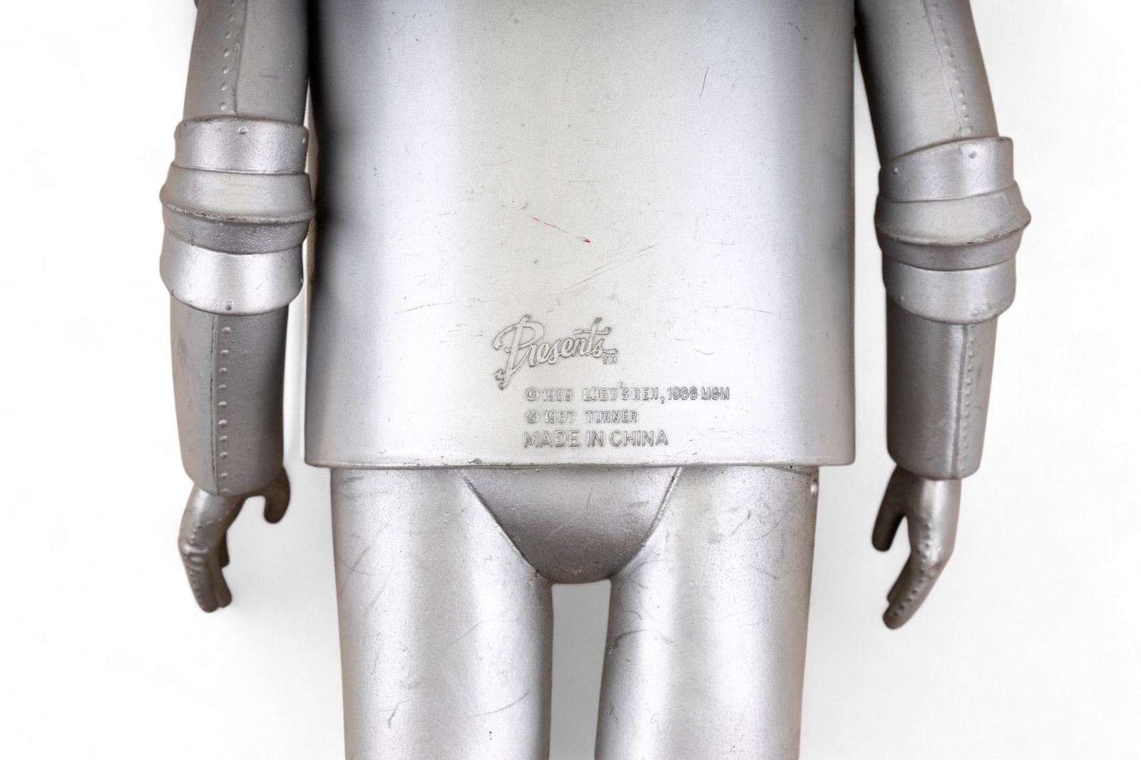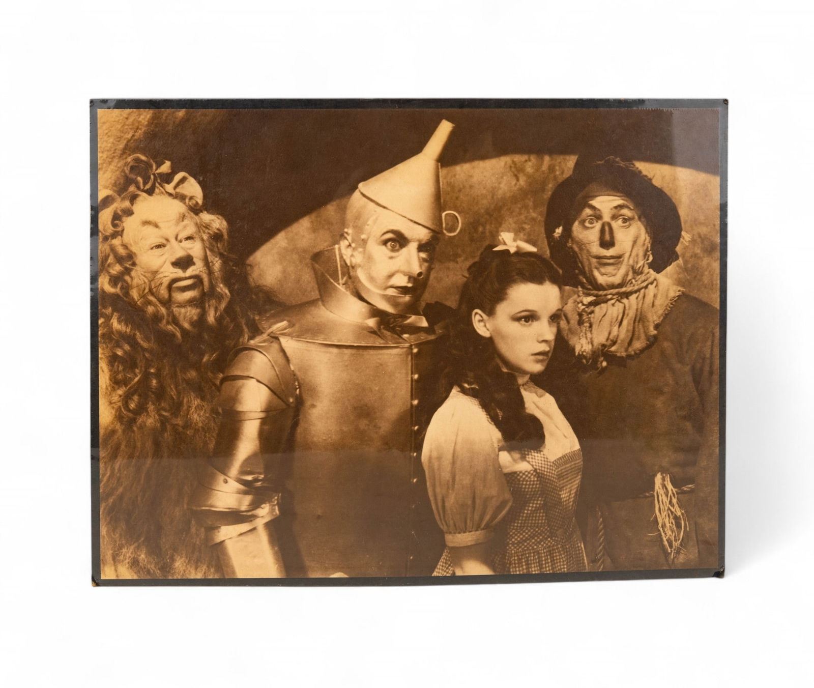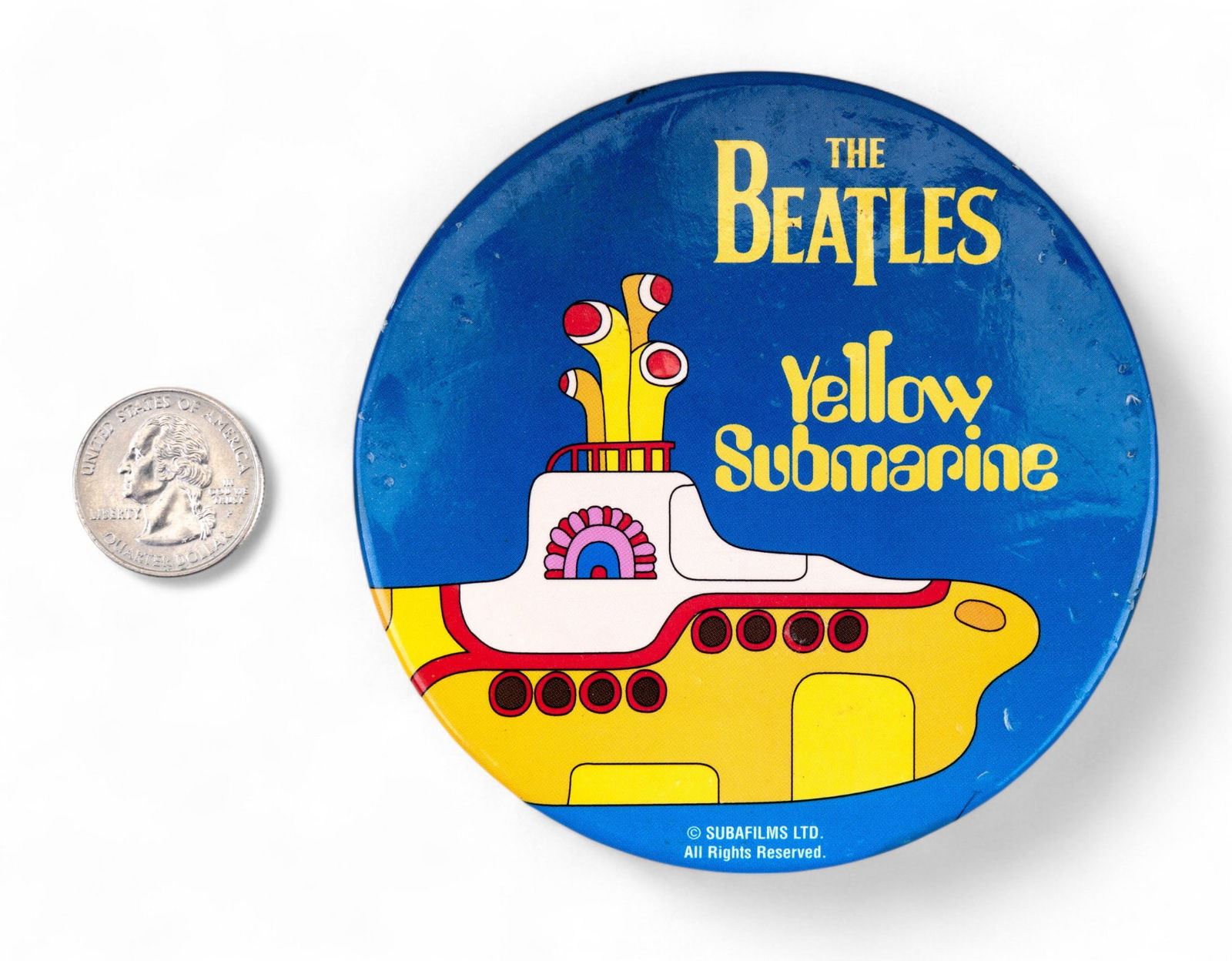 Highlights include a vintage Yellow Submarine 4" button with some wear and loss and a vintage plastic Tin Man doll measuring approx. 14" H with some wear. 2 Beatles unopened 500 piece, 19" x 19" jigsaw puzzles and a sepia tone Wizard of Oz group photo.