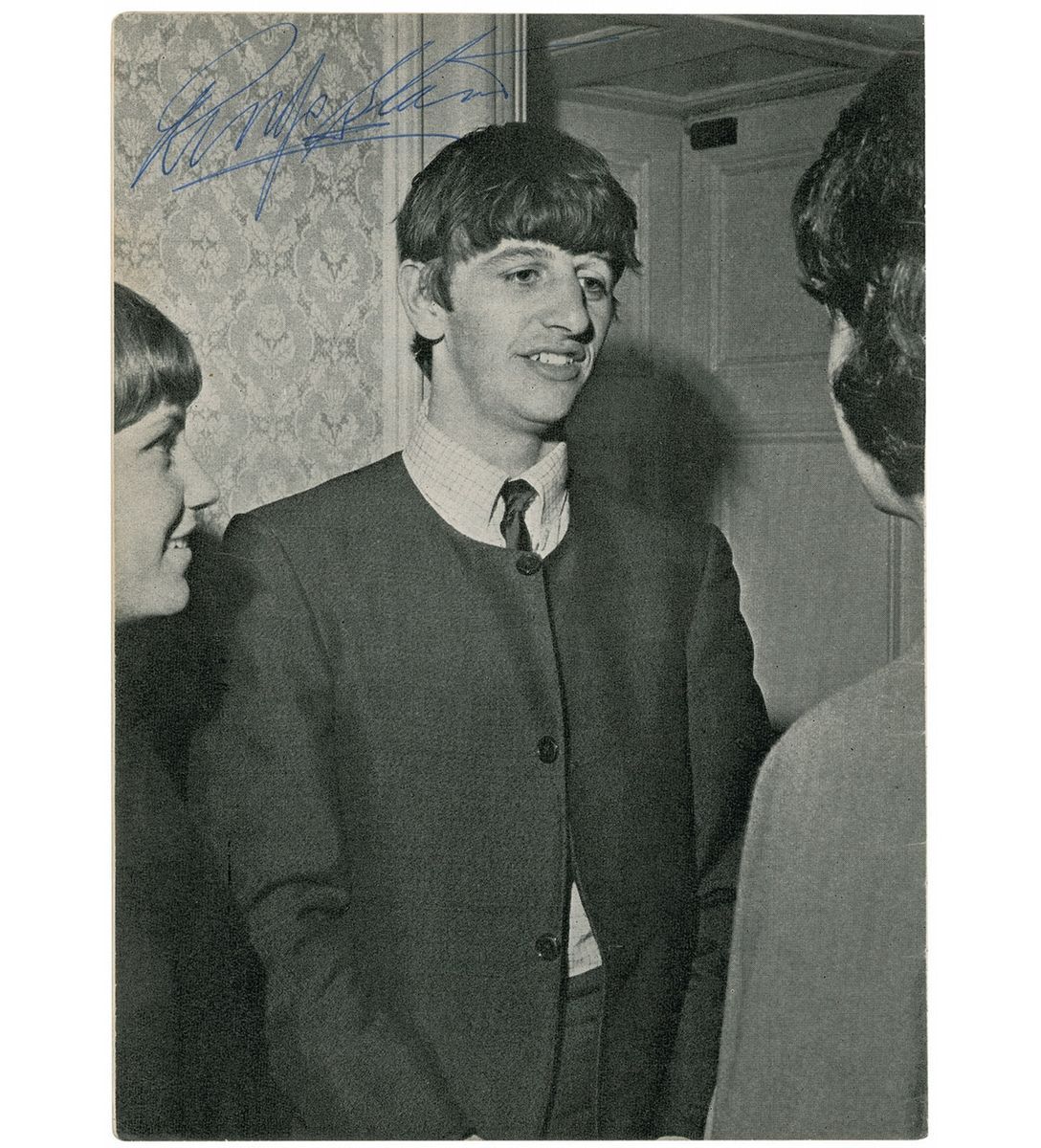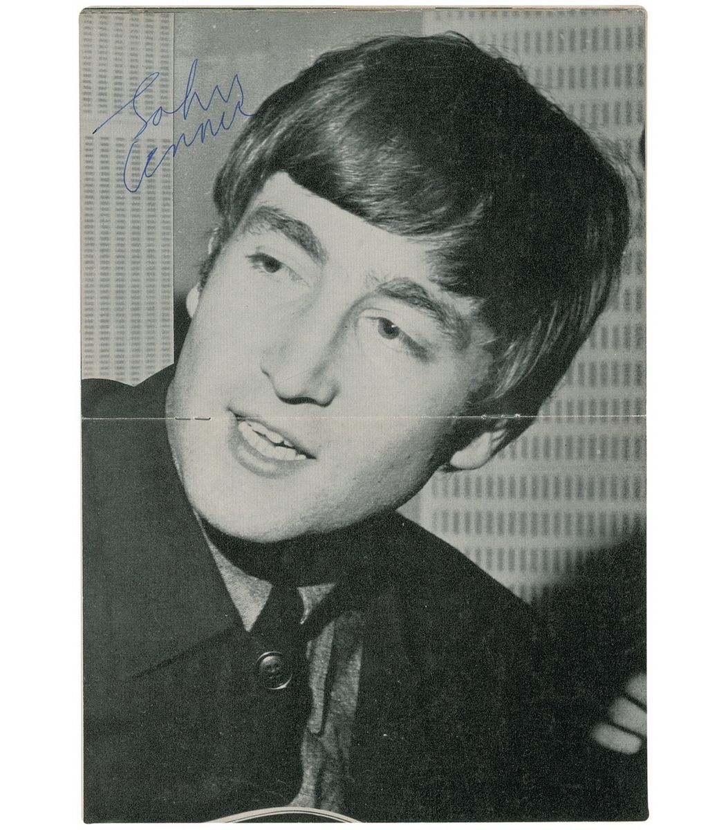 Original Beatles Book Monthly #2 fanzine, dated September 1963, 6 x 8.25, featuring articles and photos of the band. Signed inside in blue ballpoint on their individual full-page photos by John Lennon, Paul McCartney, George Harrison, and Ringo Starr. In fine condition, with scattered light creasing, soiling, and wear to covers. Accompanied by two letters of authenticity from noted Beatles expert Frank Caiazzo, one which reads, in part: “The signatures were obtained on September 8, 1963, following a performance by The Beatles at the ABC Cinema in Blackpool, England. These represent excellent examples of their signatures from that time period.” An exceptionally early set of signatures, with a glowing review from Caiazzo, presenting individually signed images within one item.