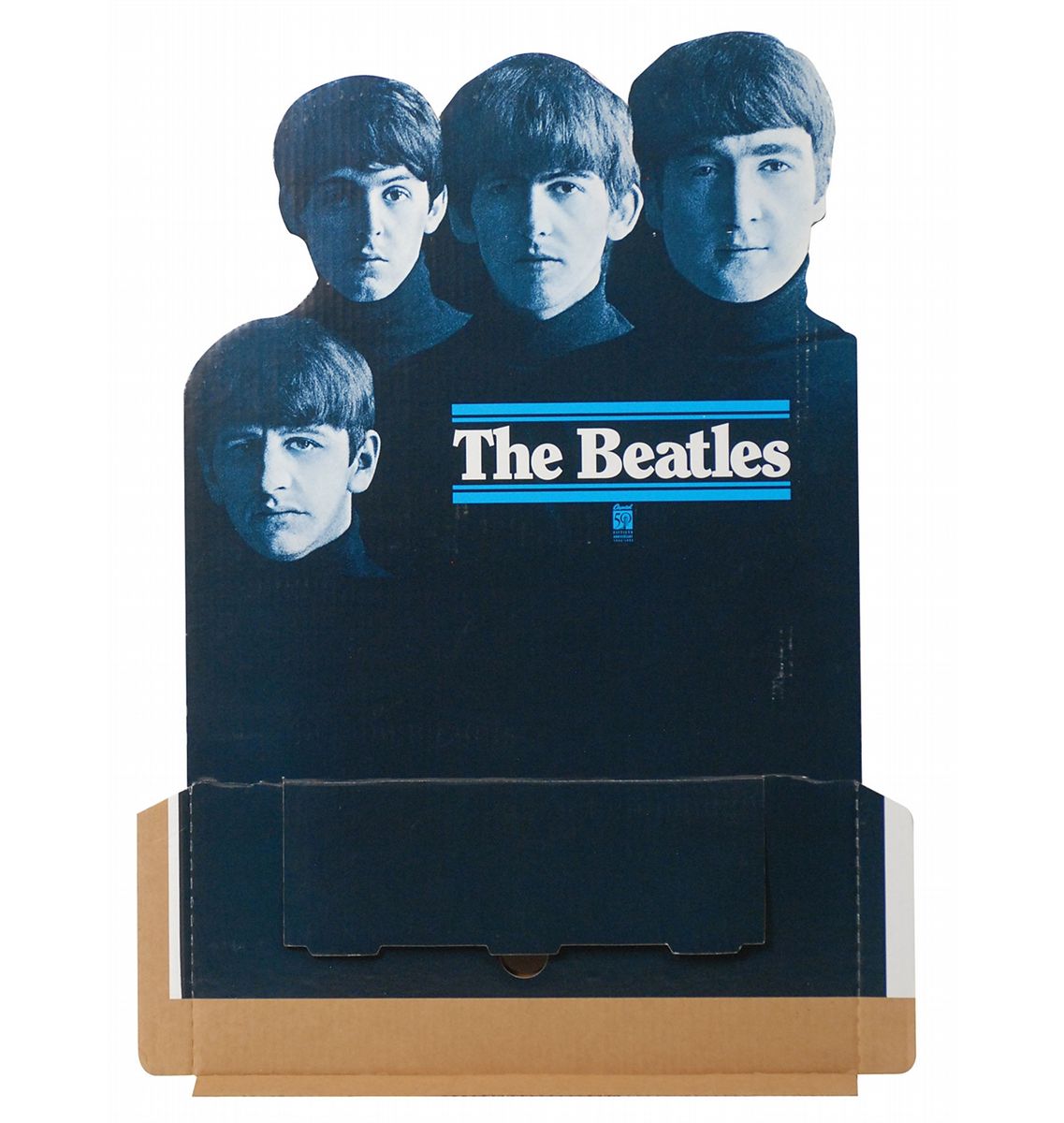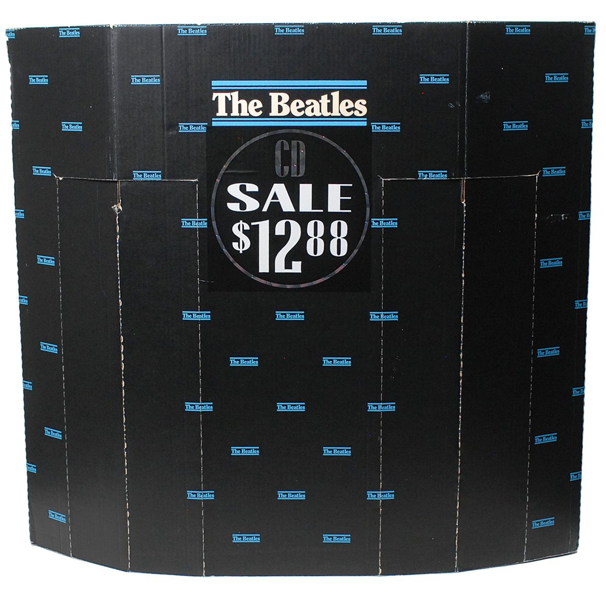 Unassembled Beatles CD record store display from 1992. The two-piece display features a 30? high base with a 25? upper section which features a die-cut image of the band from their Meet the Beatles album cover. In fine condition.