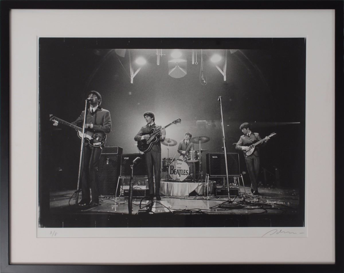 Stunning limited edition 23 x 17 artist’s proof print by noted photographer Rowland Scherman, showing the Beatles performing during their first American concert at the Washington Coliseum on February 11, 1964. Signed in the lower border in pencil by Scherman and numbered ‘A/P.’ Handsomely archivally matted and framed. In fine condition. This magnificent image captures the energy of the concert, which came just two days after the Beatles’ legendary appearance on Ed Sullivan. Scherman is especially well known for his 1960s music photography, particularly for his many iconic images of Bob Dylan. Oversized.