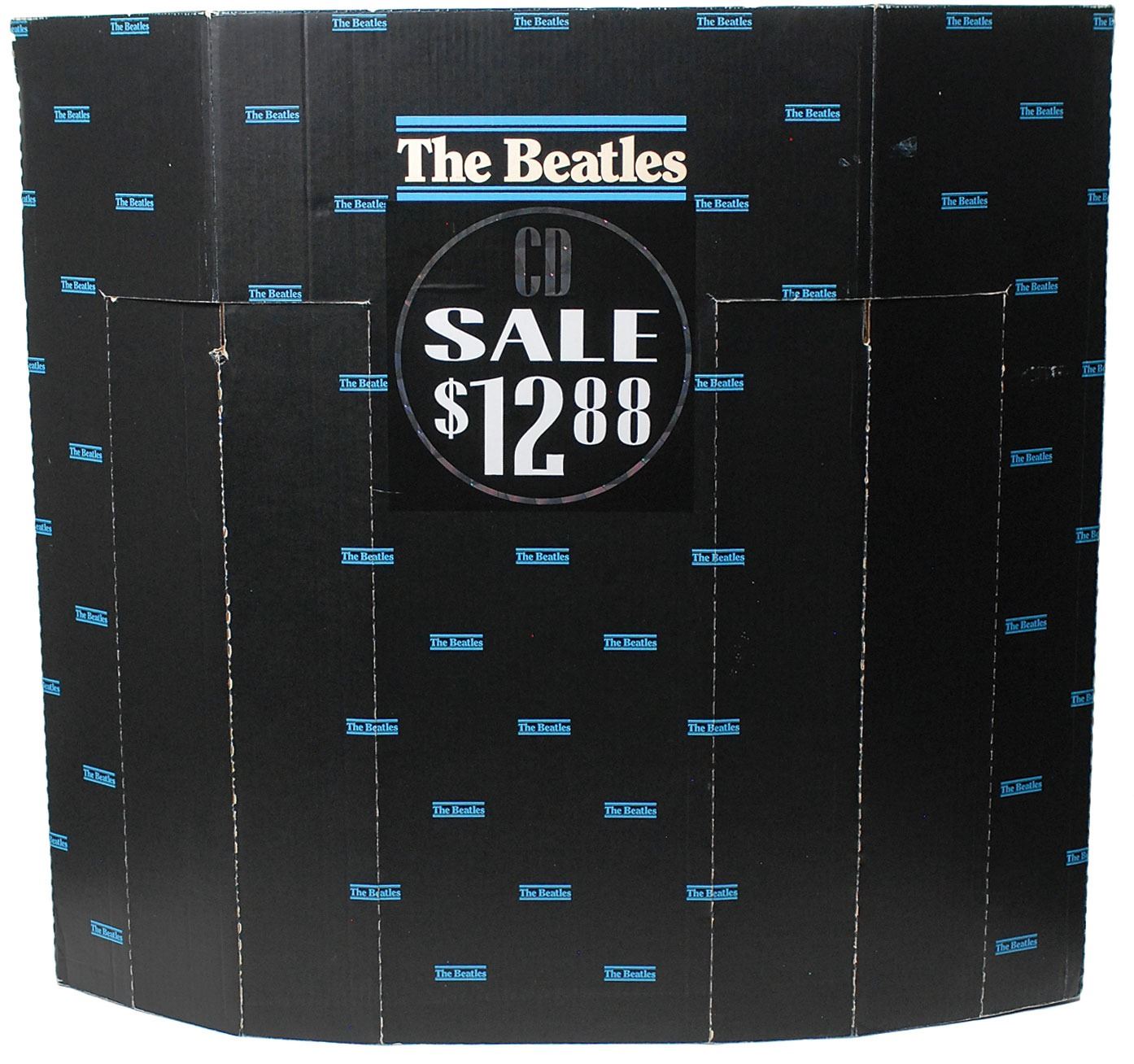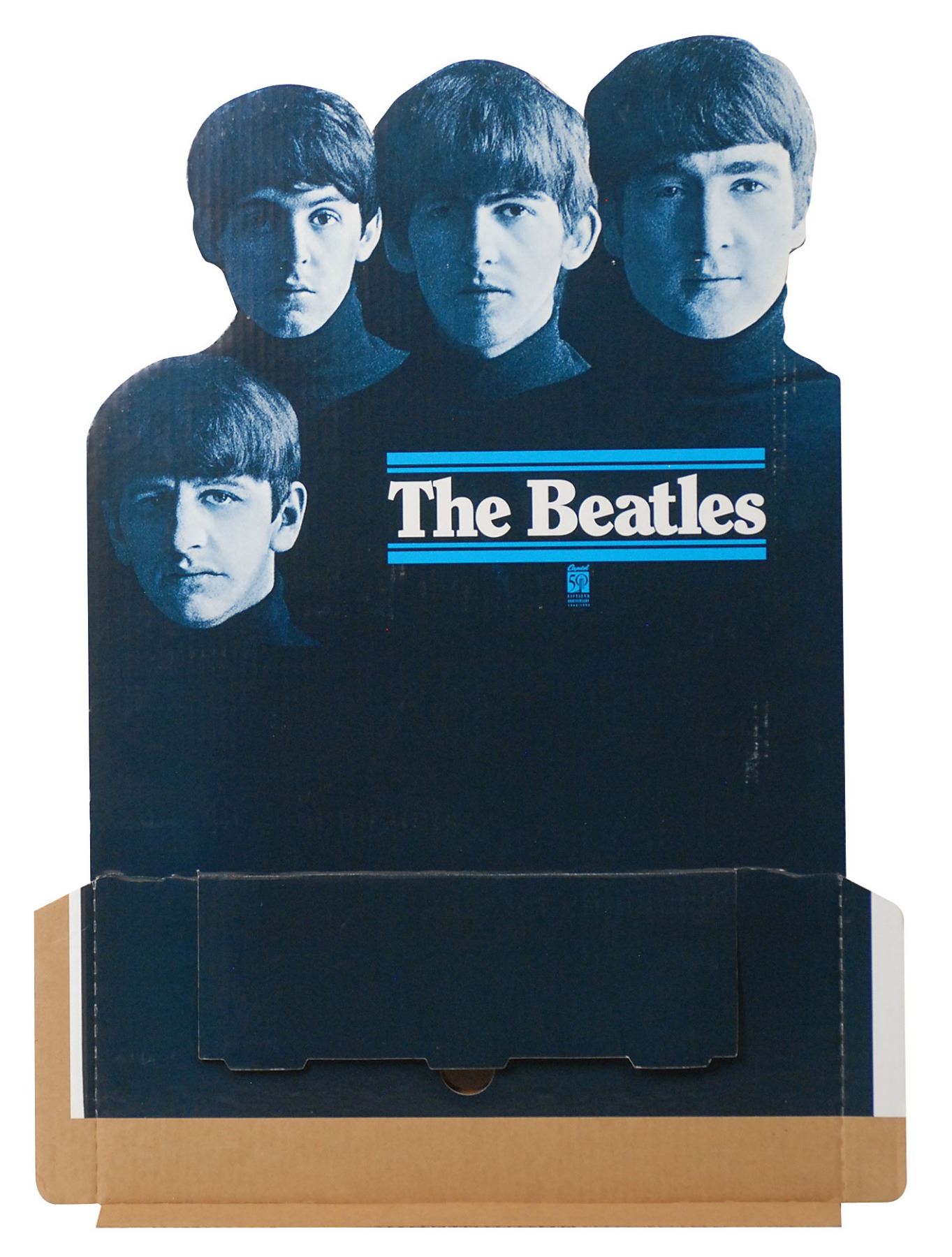 Unassembled Beatles CD record store display from 1992. The two-piece display features a 30.5? high base with a 26? upper section which features a die-cut image of the band from their Meet the Beatles album cover. In fine condition.