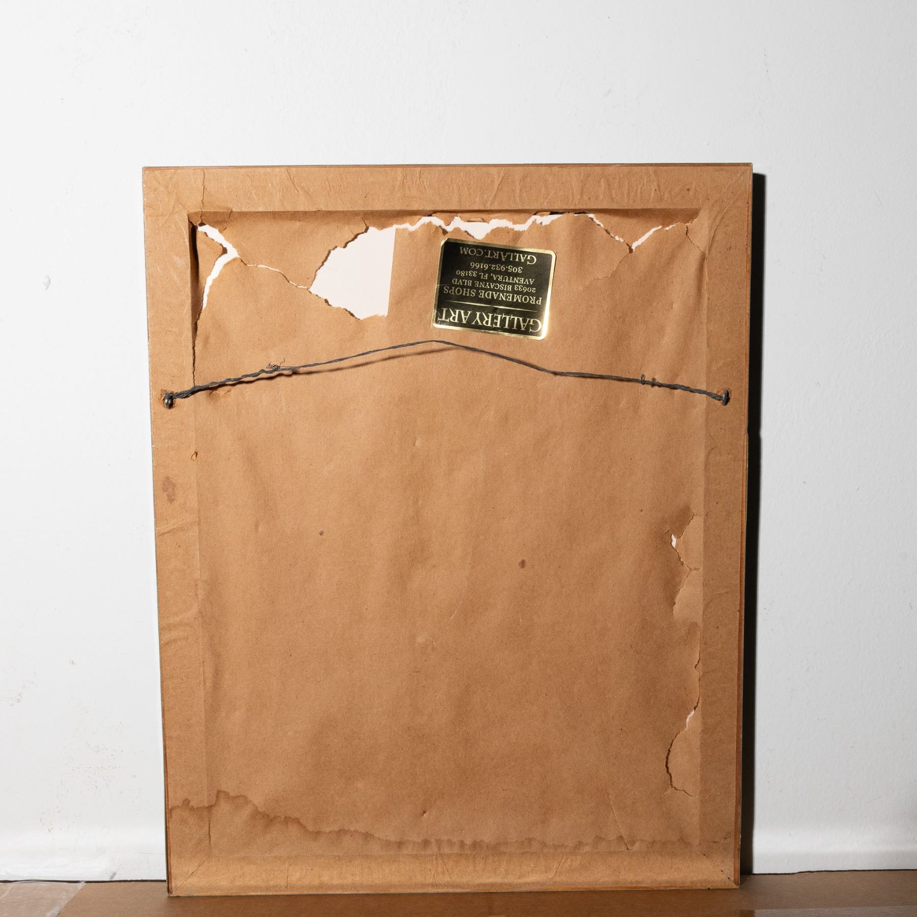 This vintage produce crate label for Beau Geste features bold, colorful lithographic artwork of a French Foreign Legion soldier sounding a bugle, evoking the adventurous spirit of the 1939 film adaptation of Beau Geste. Distributed by Silberman & Gerst, Inc. of Los Angeles, California, this label was originally used for fruit or vegetable packaging, a common advertising practice in early 20th-century America. The piece is professionally framed in a glossy teal frame with white matting, preserving its nostalgic charm. A great collectible for fans of vintage advertising, Hollywood memorabilia, and historical ephemera. Artwork can be unframed and rolled for shipment.