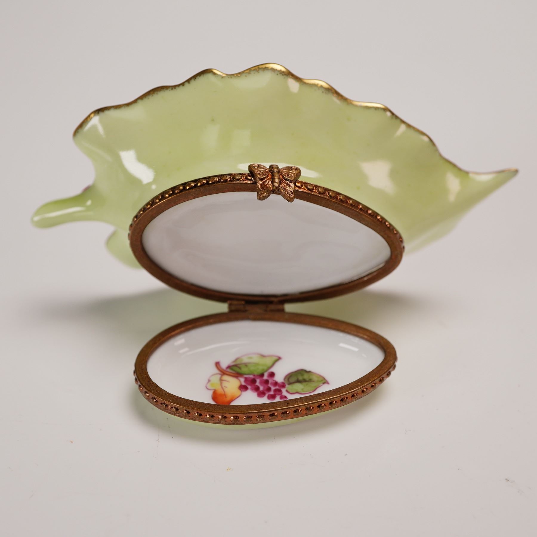 Beauchamp Limoges Porcelain Trinket Box, Leaf with Grapes and Ladybug