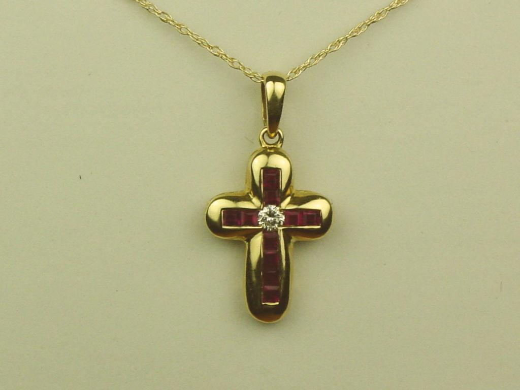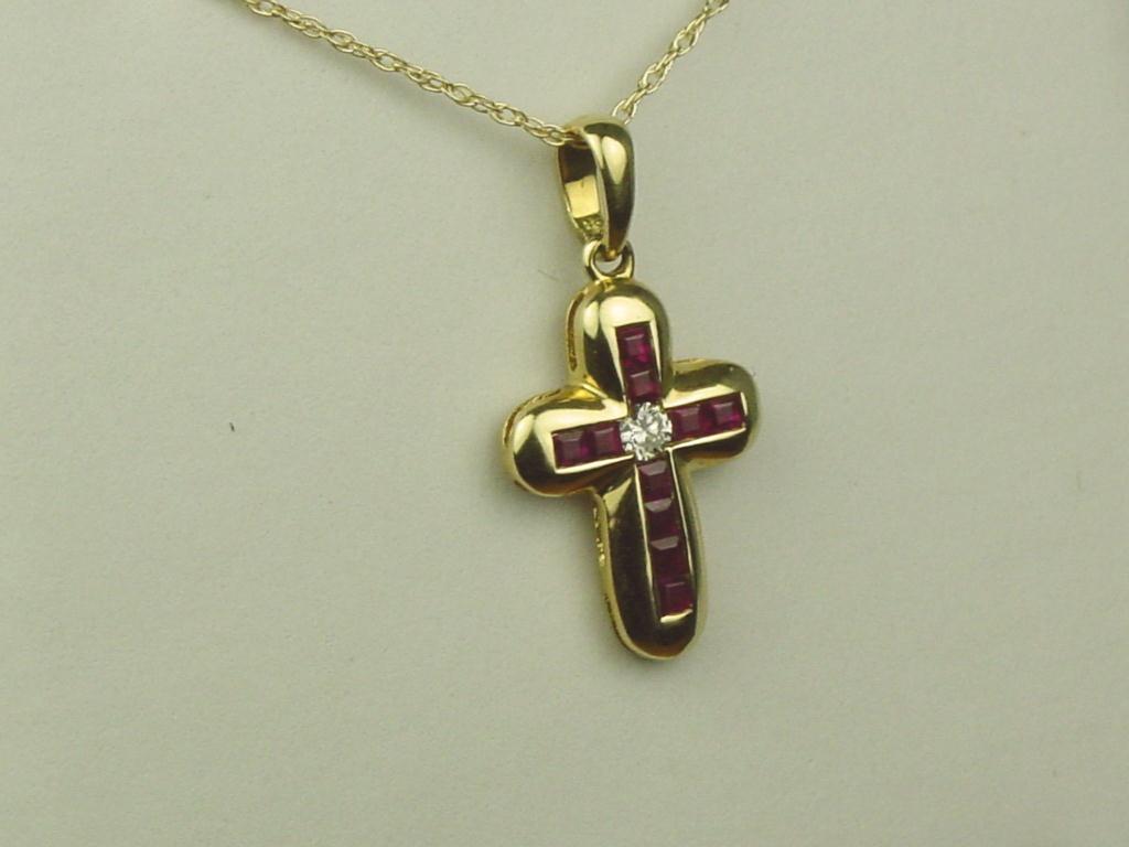 Beautiful 14K Yellow Gold Ladies Cross Fine set with rubies and diamonds weighing approx. 0.50 carats. Retail $995.00Fine set with rubies and diamonds weighing approx. 0.50 carats. Retail $995.00