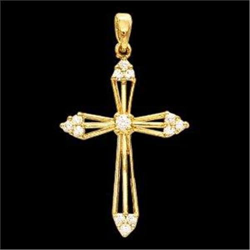 14k Yellow Gold Cross featuring 13 'Sparkling' round Diamonds. The Diamond Total Weight = .28 Carats! This VERY beautiful Diamond cross measures 28mm x 20mm and it IS in Mint condition.