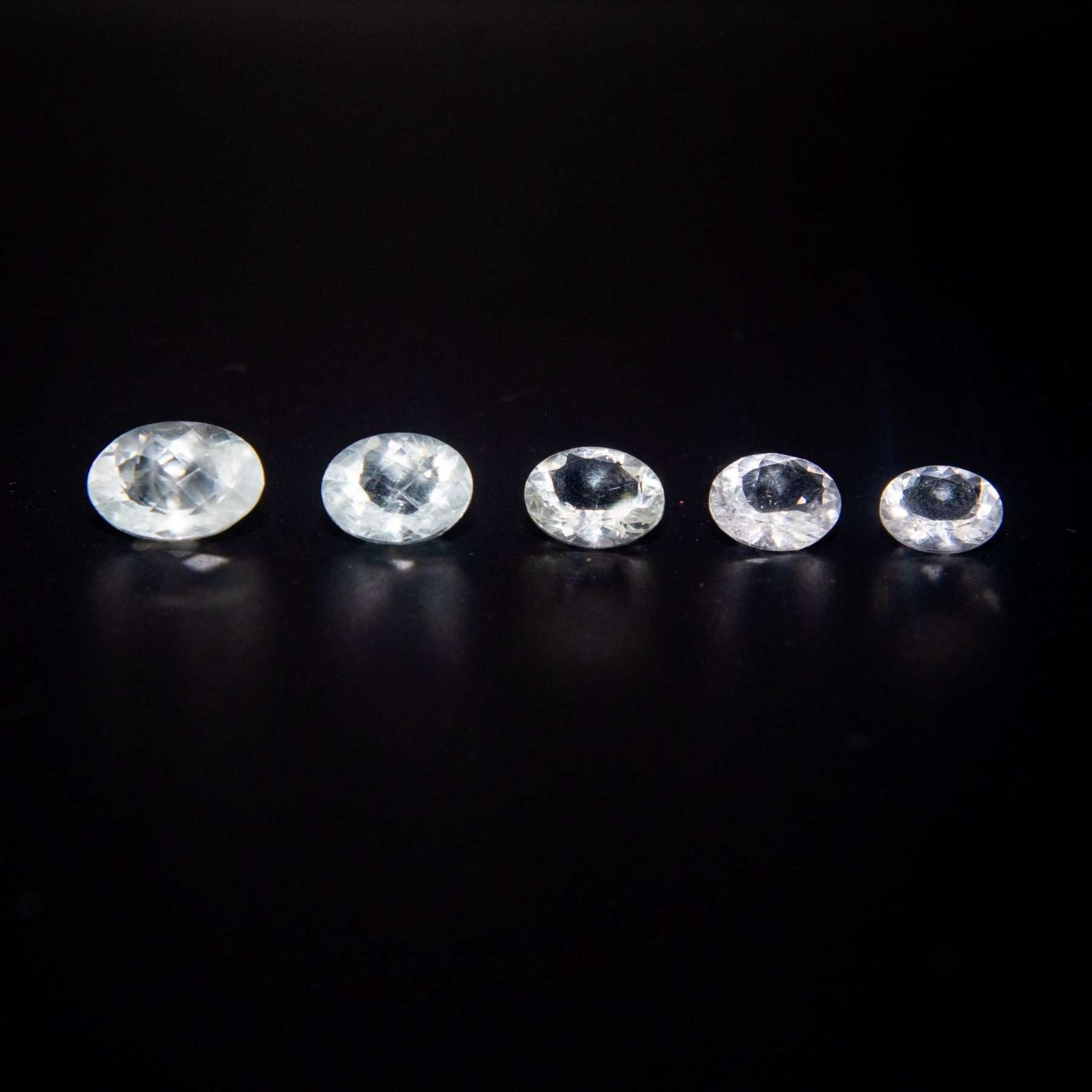 Beautiful 18 Cttw Natural Untreated Aquamarine Lot. This 5 piece lot are all faceted oval cuts. Treatment: None. Origin: Brazil.