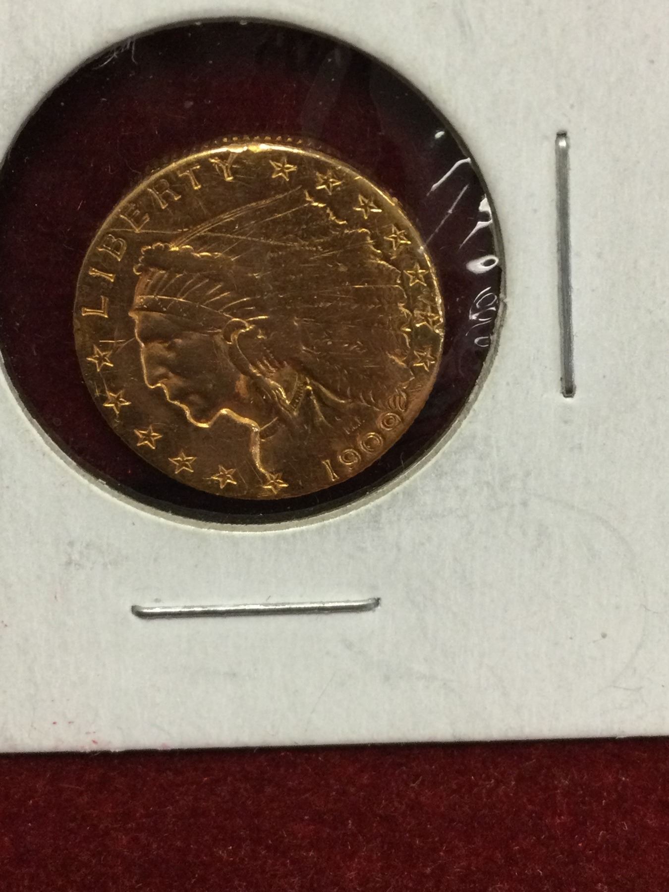 You are bidding on a genuine US 1909 Indian Head $2.50 Gold Coin, a fantastic addition to your collection