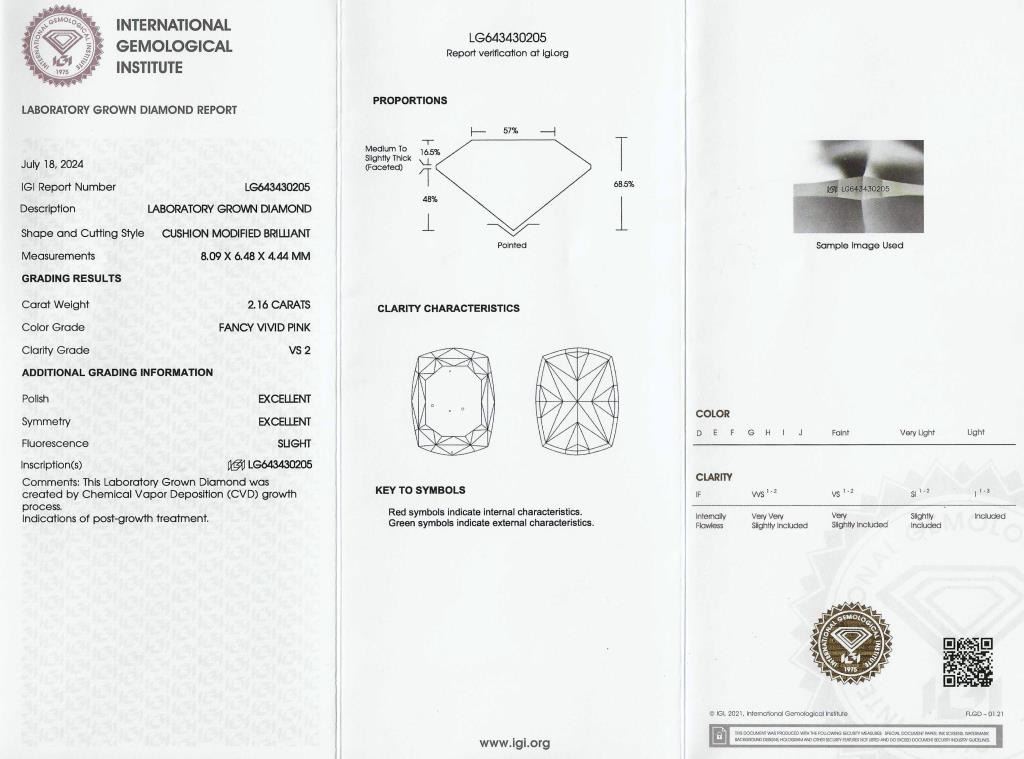 with full I.G.I report set in 14 karat white gold setting. Compare to an Extremely Rare Natural Earth 2.00 carat Pink Diamond over $1,000,000.00 and BLUE NILE Lab Grown Pink 2.00 carat Diamond approx. $5,000