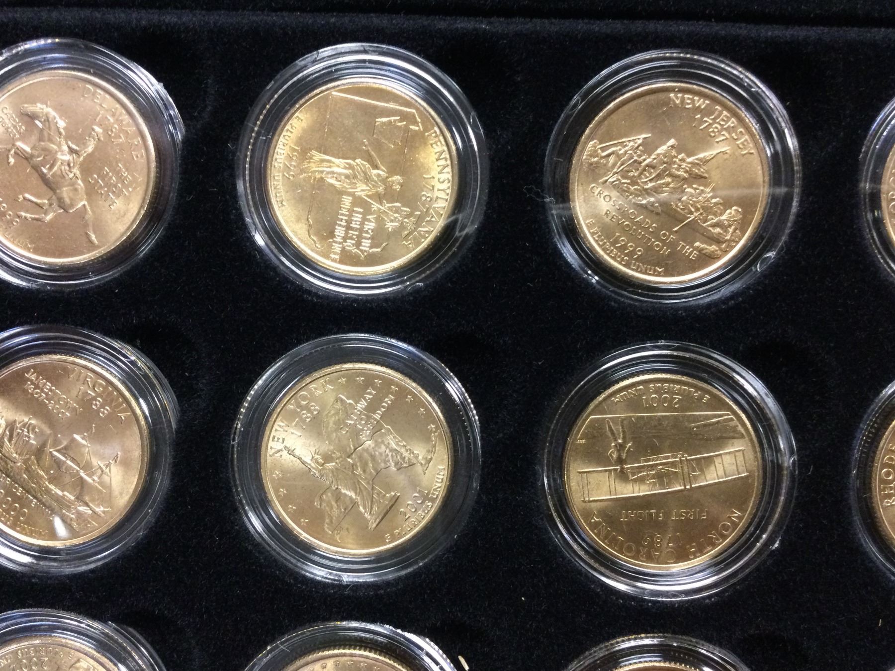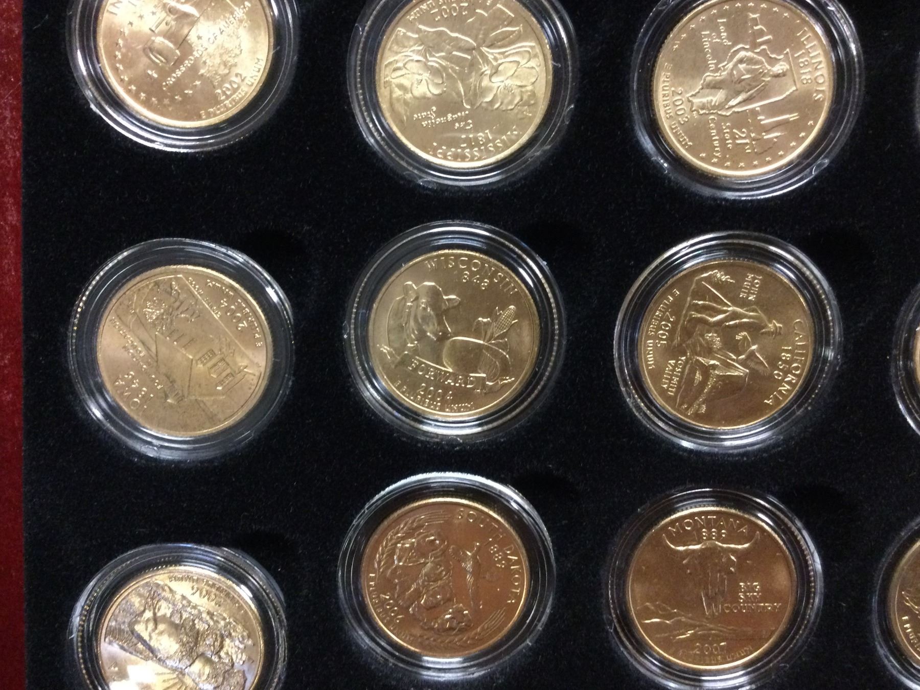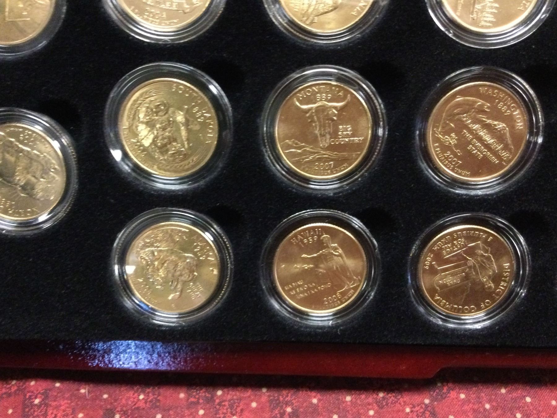 You are bidding on a beautiful cased US Commemorative 24Kt Goldwashed State Quarter Collection, A great addition to your collection
