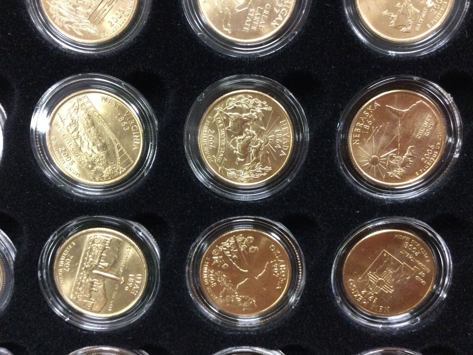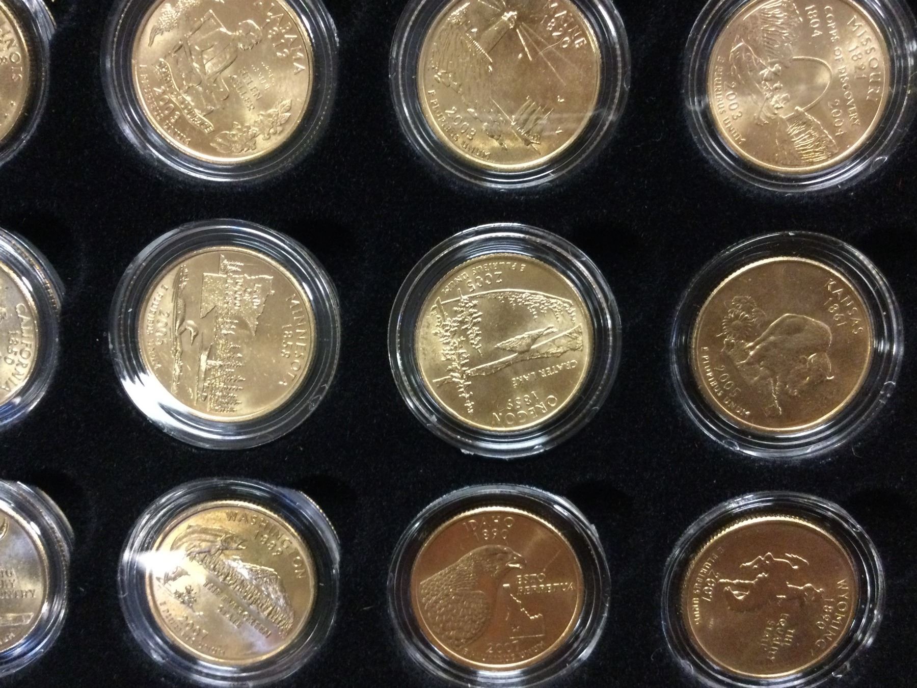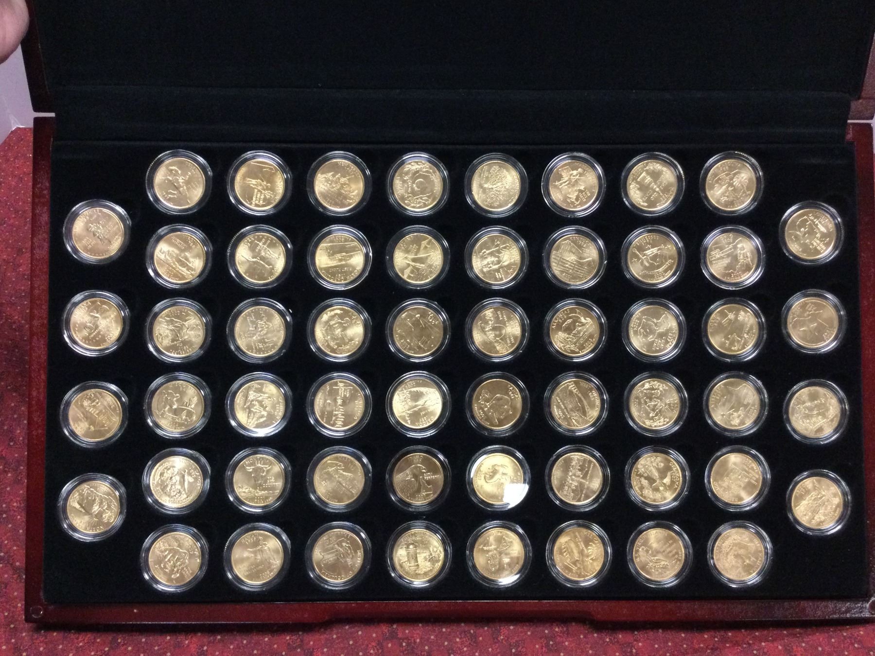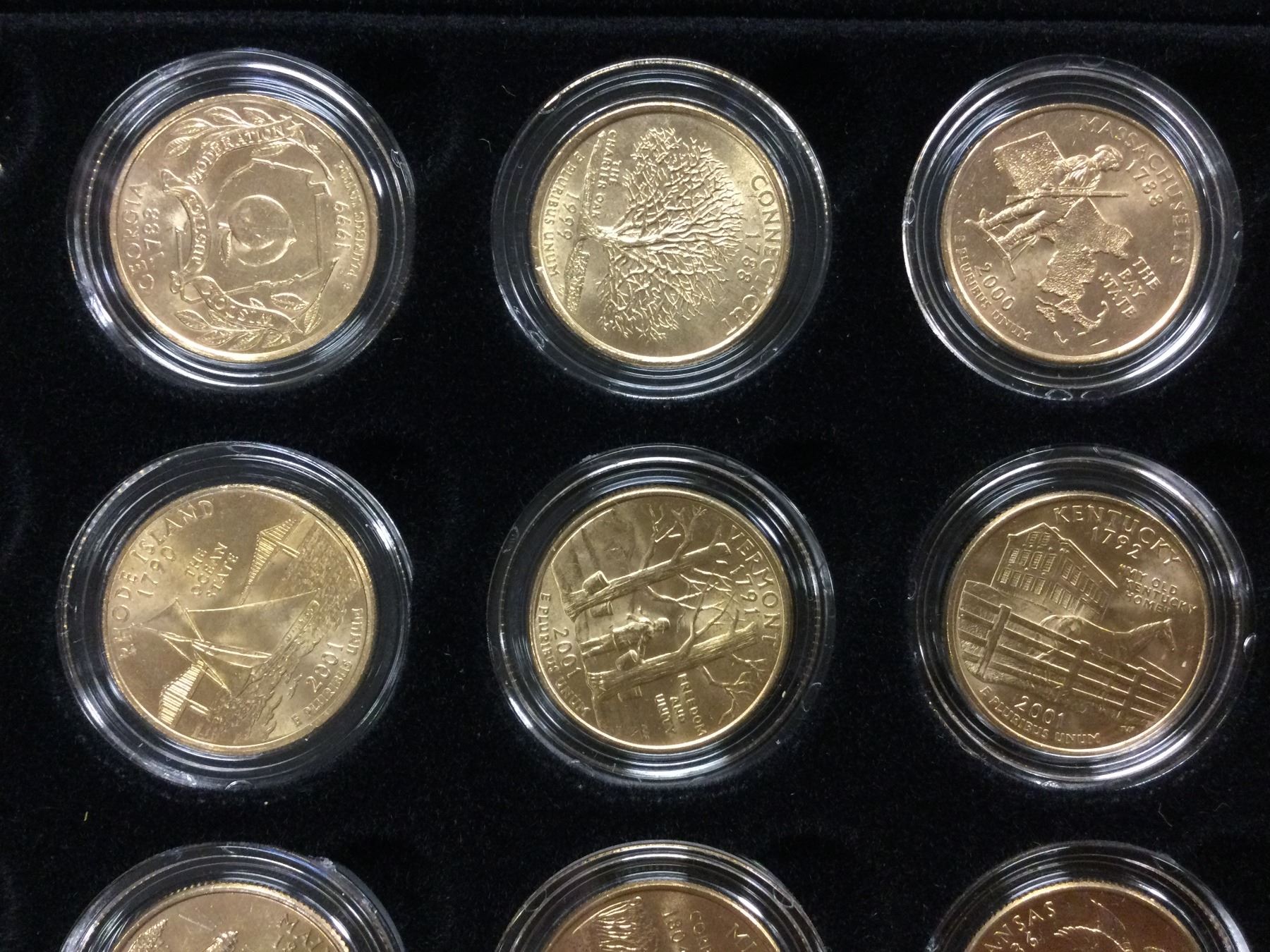 You are bidding on a beautiful cased US Commemorative 24Kt Goldwashed State Quarter Collection, A great addition to your collection