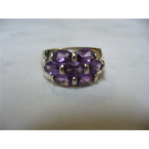 This beautiful wide band 925 sterling ring hold 7 6x4 mil. amethyst totaling 3.5 ct of very deep colored natural amethyst stones. This ring is waiting on that size 6 finger.This ring should appraise for around $225.00 - $275.00. Don't miss this beauty.