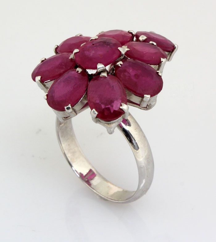 Sightly Flower Design Pink Ruby Sterling Silver Ring; Size: 8x6mm; ctw: 13.95; stone count: 9; gram weight: 4.04; ring size: 8.5