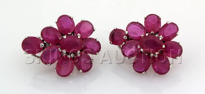 Beautiful 51.30CTW Flower Pink Ruby Silver Earring **|**|** Sightly Flower Design Pink Ruby Silver Earring w/ Clipon Back; Size: 8x6mm; ctw: 27.90; stone count: 18; gram weight: 4.68 ; MSRP: $2300