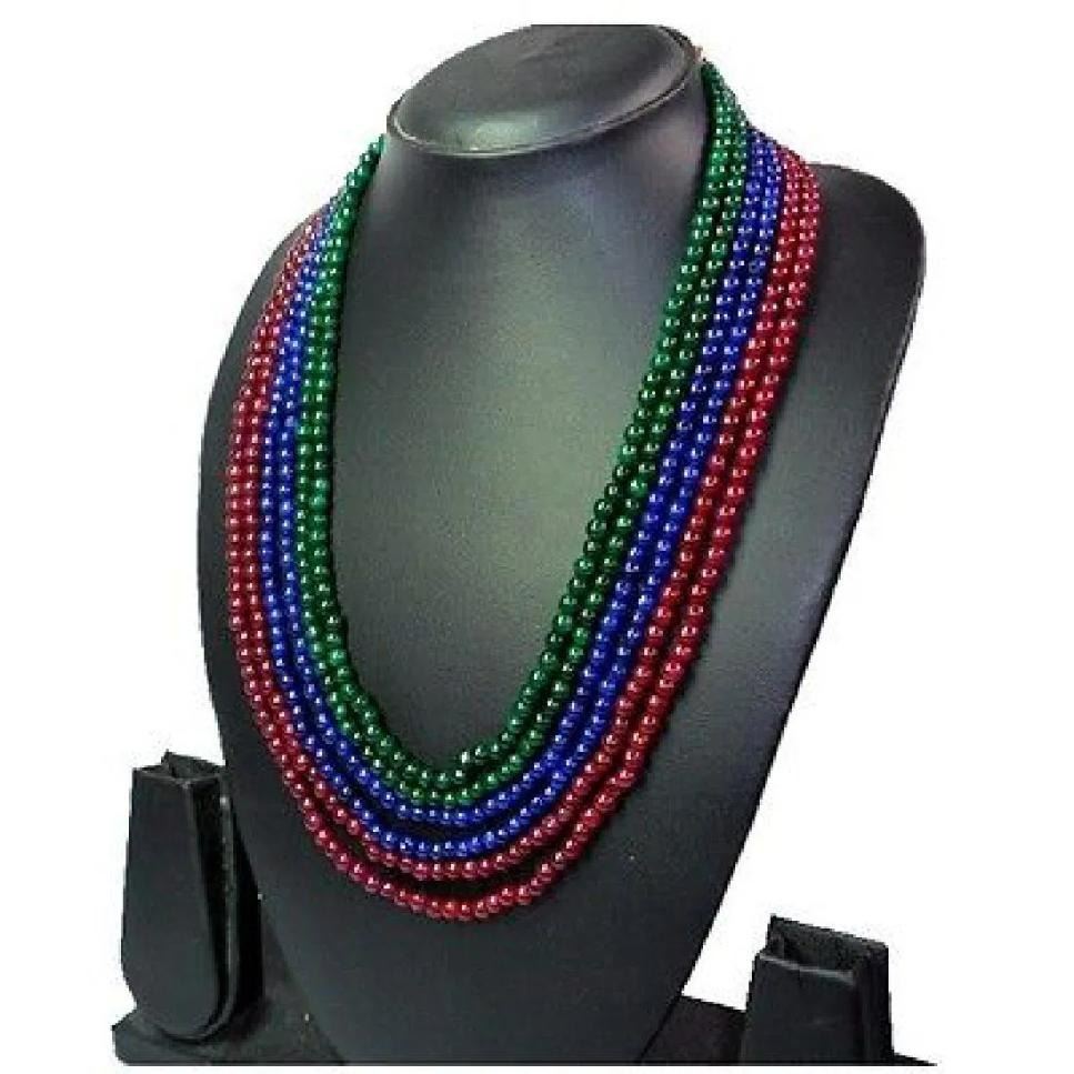 Beautiful 6 Strand Natural Ruby, Emerald and Blue Sapphire Necklace