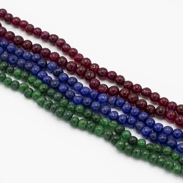 Beautiful Mined From The Earth 6 Strand Natural Ruby, Emerald and Blue Sapphire Bead Necklace. This necklace features highly polished rubies, emeralds and sapphire polished beads ranging in size from 3.5-4.8mm. Total gem weight is approx. 381.5 Ctw. Adjustable lengths from 14" to 28".