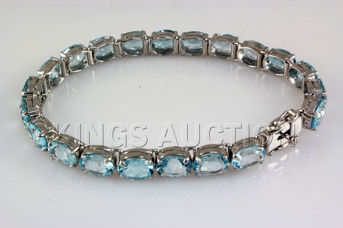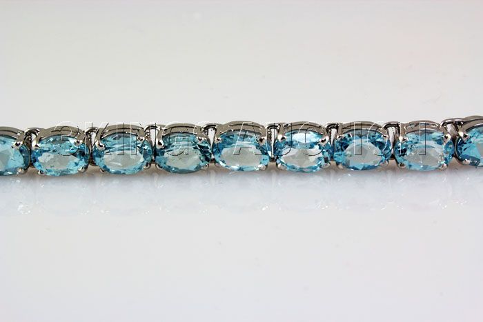 Beautiful 81.66CTW Blue Zircon Silver Bracelet **|**|** 7 inches long Sky Blue Zircon Oval Faceted Gemstone Silver Bracelet; Size: 8x6mm; ctw: 42.00; stone count: 21; gram weight: 7.93 ; MSRP: $1800