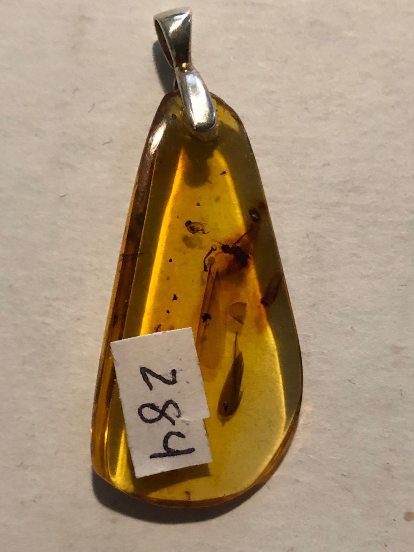 Beautiful Amber Pendant Filled with Insects and Plants Total 2.9 Grams Sterling Silver Clasp